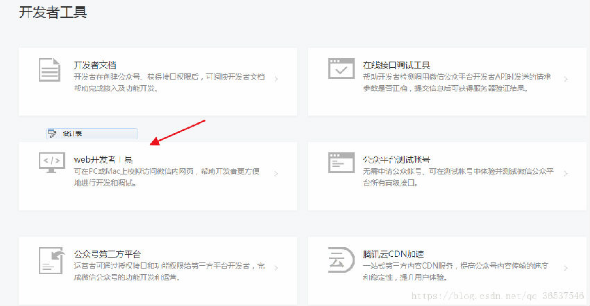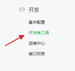1.首先獲取到微信公眾號(hào)開(kāi)發(fā)者的權(quán)限,打開(kāi)微信公眾平臺(tái)首頁(yè),在左側(cè)導(dǎo)航欄找到 “開(kāi)發(fā)者工具”