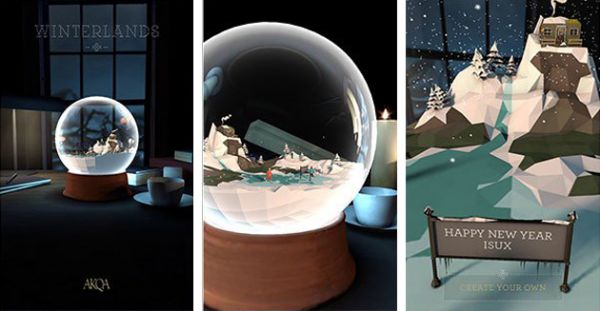 《AKQA Winterlands》借勢(shì)圣誕節(jié),讓用戶進(jìn)入水晶球,環(huán)視3D場(chǎng)景,讓用戶有身在其中的感覺,在視覺和互動(dòng)上達(dá)到雙贏。