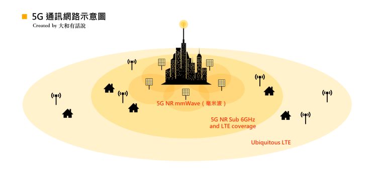 也就是說(shuō),其實(shí)5G 網(wǎng)絡(luò)結(jié)合了既有的4G LTE 頻段,是一種異質(zhì)性網(wǎng)絡(luò)(HetNet)。其透過(guò)主打速度的毫米波(mmWave)寬帶技術(shù),及主打低功耗、覆蓋能力廣的sub 6GHz窄頻技術(shù),在不同的環(huán)境下提供最適的無(wú)線網(wǎng)絡(luò),以同時(shí)滿足短距離及長(zhǎng)距離的通訊要求。