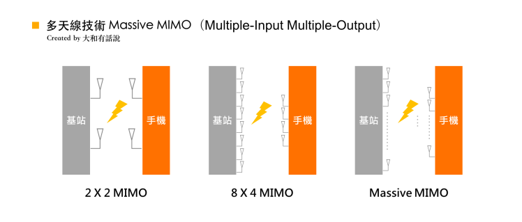 MIMO指的是多進(jìn)多出(Multiple-Input Multiple-Output),即透過(guò)多根天線發(fā)送,多根天線接收,讓數(shù)據(jù)傳輸?shù)乃俣茸兊酶?。又根?jù)電磁波原理,波長(zhǎng)越短,天線就可做的愈小的情況下,到了5G時(shí)代,隨著天線漸成為毫米級(jí)尺寸,我們就可以將更多的天線塞入手機(jī)終端及微型基地臺(tái)里,讓既有的MIMO強(qiáng)化為Massive MIMO,使速度更上一層樓。