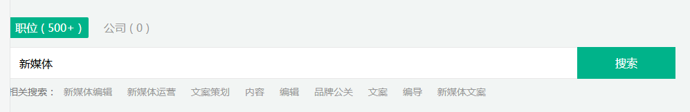 在搜索框內(nèi)輸入“新媒體”會(huì)出現(xiàn)“新媒體運(yùn)營、新媒體運(yùn)營專員、新媒體編輯”等各種不同職位,通過拉勾網(wǎng)顯示職位數(shù)量我們從而得知市場需求挺大的。