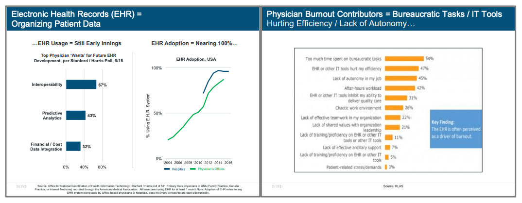 連通暗池——現(xiàn)代醫(yī)療保健剛剛開始擁抱現(xiàn)代的數(shù)據(jù)結(jié)構(gòu)和API,而既有的醫(yī)療數(shù)據(jù)庫互相之間連通非常薄弱,可用性和易用性都不足,而疫情會(huì)促進(jìn)改變。